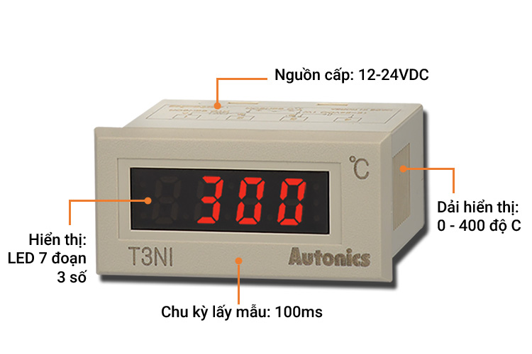 - Dải hiển thị: 0 đến 400℃