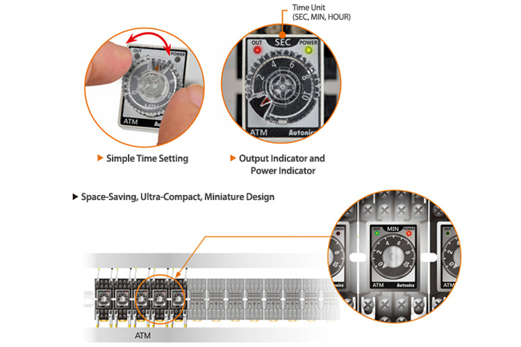 Bộ định thời Autonics ATM4-25S là thiết bị có tiếp điểm chậm hơn so với thời điểm nhận tín hiệu điều khiển. Người dùng có thể điều chỉnh được độ trì hoãn về thời gian của rơ le thời gian, được dùng trong các sơ đồ bảo vệ và tự động và trong những hệ thống điều khiển các quá trình công nghệ.