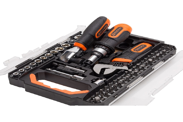 Bộ dụng cụ Tactix 60 món được xếp trong hộp rất tiện dụng và khoa học, chỉ cần một thao tác đơn giản, bạn sẽ chọn được ngay món phụ kiện cần sử dụng