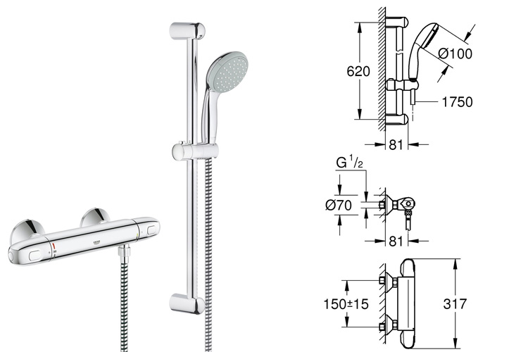 Sản phẩm bộ trộn GRT 1000 GROHE 34151003 được sử dụng để gắn lên lên tường phòng tắm thông với đường ống nước giúp điều chỉnh nước tắm, điều chỉnh áp lực cũng như nhiệt độ nước.