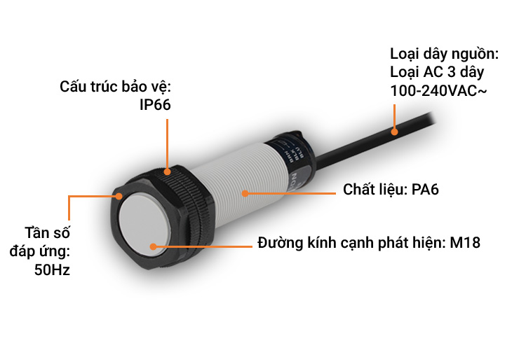 - Đường kính cạnh phát hiện: M18