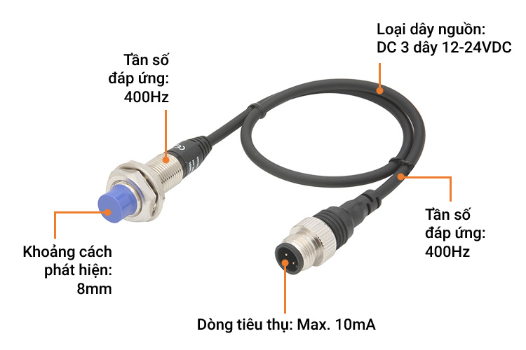 - Loại dây và nguồn: DC 3 dây 12-24VDC