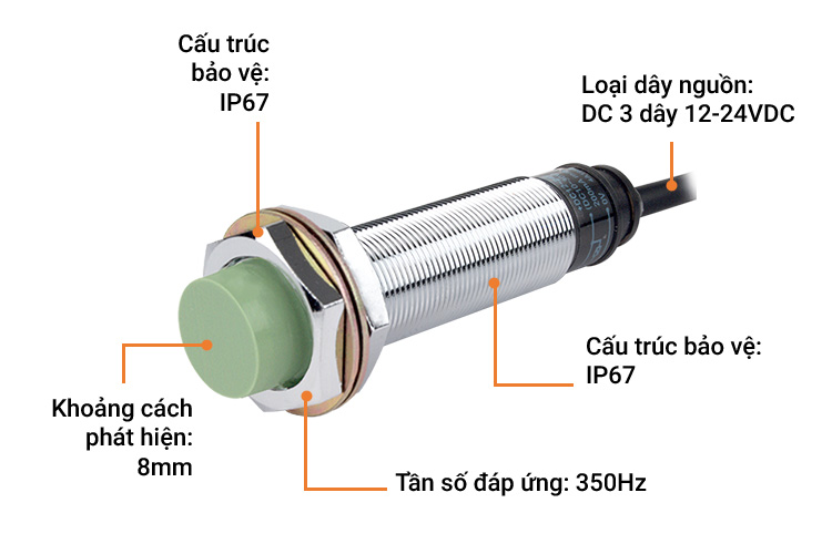 - Loại dây và nguồn: DC 3 dây 12-24VDC
