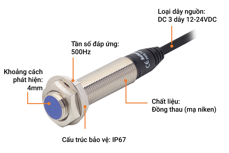 - Loại dây và nguồn: DC 3 dây 12-24VDC
