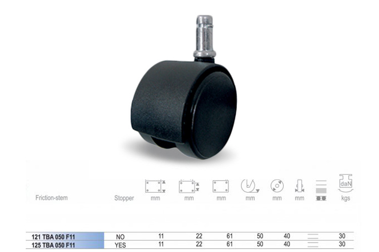Office chair wheels are office chair accessories. Cheap, unknown origin or damaged after a period of use affects the work and mobility of the user. Therefore, they should be replaced early because if only 1 wheel is stuck, it will quickly damage the remaining wheels. Ethos 121TBA050F11 wheel is suitable for carpet and tile floors, abrasion, impact and water resistance... will be a reliable choice for customers.