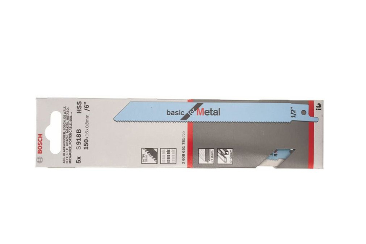 Set of 5 reciprocating saw blades for iron S 918 BF BOSCH 2608651781 specialized for cutting metal in the mechanical industry. When installed on a reciprocating saw, it will help cut iron extremely effectively with a smooth, beautiful cut.