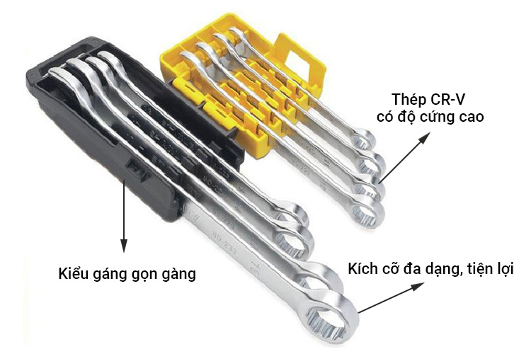 - Cờ lê 2 đầu: 1 đầu vòng miệng và 1 đầu tròn xoay