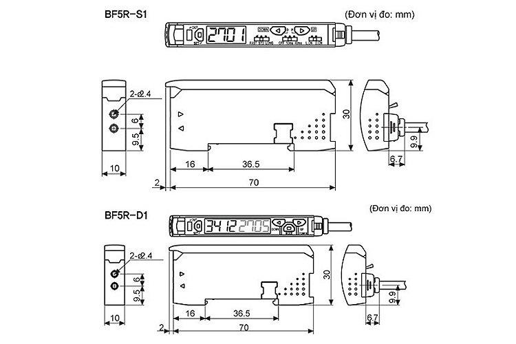 - Đặc biệt, bộ khuếch đại BF5 bổ sung thêm đặc điểm ngõ ra điều khiển PNP và dòng hiển thị số màu xanh lam/lá.