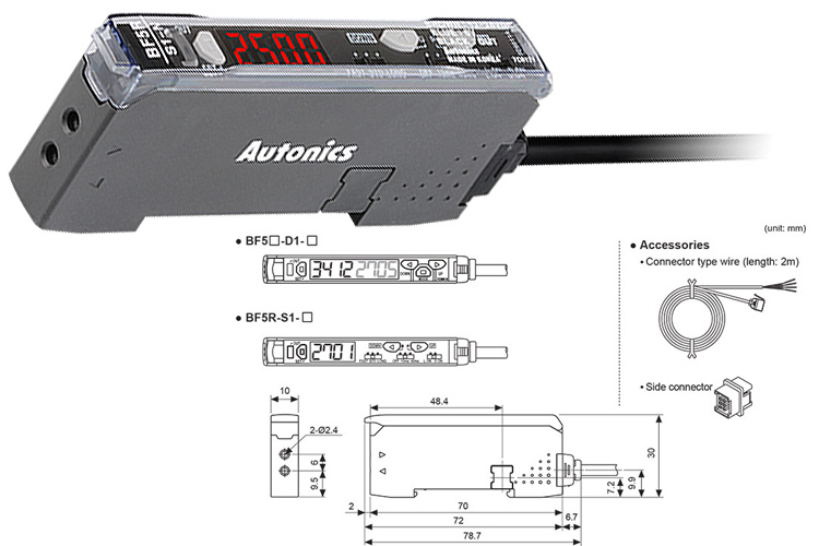 - Đặc biệt, bộ khuếch đại BF5 bổ sung thêm đặc điểm ngõ ra điều khiển PNP và dòng hiển thị số màu xanh lam/lá.