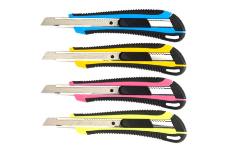 Paper cutter Deli has a plastic-covered body, a large handle with a curve that fits the palm of the hand, making it easy to hold and fix the knife; The blade is made of sharp, rust-free steel alloy.