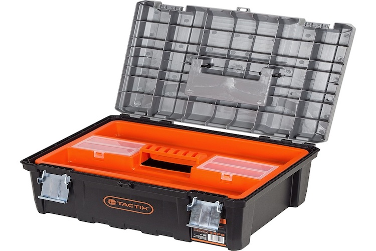 The 44cm Tactix 320332 plastic tool box is made of PP plastic, so it is extremely sturdy, highly impact resistant, does not contain formaldehyde, so it is not harmful to the user health.