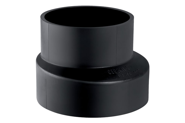 Eccentric reducer PE-HD d110/75 L8 Geberit GE367.576.16.1 is called eccentric reducer because the 2 connecting center lines from 2 sides are offset used to connect pipe sections of different sizes together.