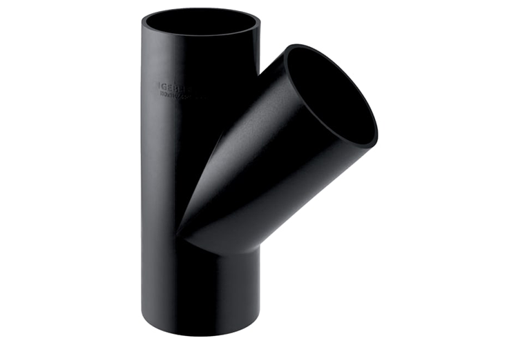 PE-HD 45G d63/56 Geberit GE364.115.16.1 branch fittings are designed with a 45-degree angle for branching the flow, the pipe is smooth and reduces friction without causing great resistance to the flow.