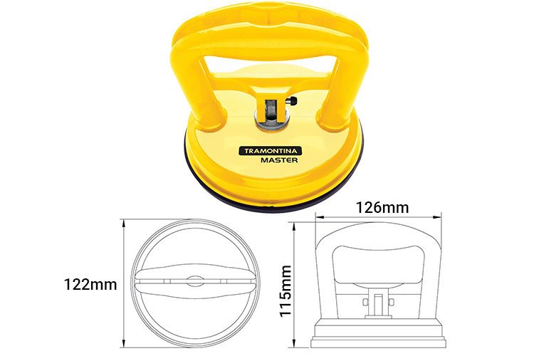 Hít kính cầm tay 50kg Tramontina 43195101 là dụng cụ hỗ trợ tốt nhất trong việc di chuyển các tấm kính, tấm đá hoặc gạch nhờ vào tác dụng của lực hút chân không tạo ra bởi tấm cao su, cần gạt.