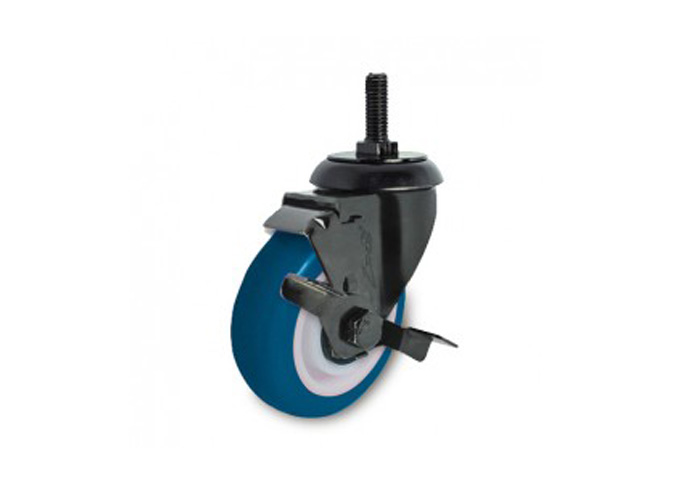 Ethos braked swivel wheels use PU material which is more elastic than rubber and more durable and flexible than metal, with a wide range of hardness, so it is very popular. PU is oil resistant, tear resistant, scratch resistant, abrasion resistant, compressive, shock absorbent, noise resistant and impact resistant than rubber, so it is often used to replace rubber in many environments with oil and many obstacles to reduce maintenance time of machinery and equipment, saving money.