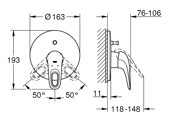 Bộ trộn nổi kết hợp với đầu sen tắm Grohe phân bổ nước tới từng tia phun một cách tối ưu.