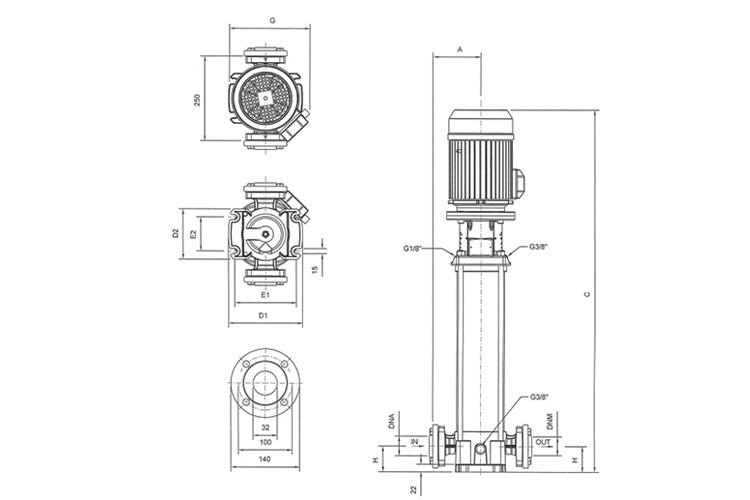 - Chủng loại: Bơm Trục Đứng Cánh Inox