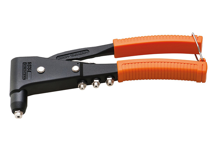 Trên kìm bấm rive có sẵn khóa gài vào tay cầm để thay đổi đầu bấm, thích hợp sử dụng các vật dụng có các đường kính 2.4, 3.2, 4, 4.8m, giúp bạn hoàn thành công việc một cách tiện lợi hơn.