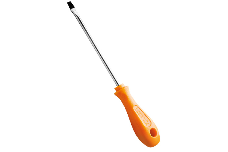 Tay cầm tua vít dẹp được bọc nhựa, có khả năng chống trơn trượt sẽ tạo cho bạn sự thoải mái khi cầm, giúp bạn thao tác, làm việc hiệu quả hơn.