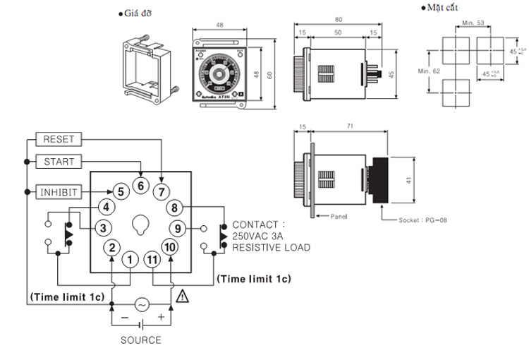 - Tiếp điểm ngõ ra: Time-limit SPDT(2c)