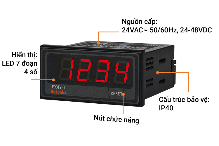 Bộ đếm Autonics FX4Y-I4 có màn hình hiển thị số dạng Led màu đỏ 4 số. Autonics FX4Y-I4 có thể đếm bằng cảm biến tiệm cận từ 0000 đến 9999 và ngược lại và có thể đếm giá trị và đặt giá trị. Đặc biệt là khi mất điện FX4Y-I4 có khả năng lưu giá trị đếm trong máy.