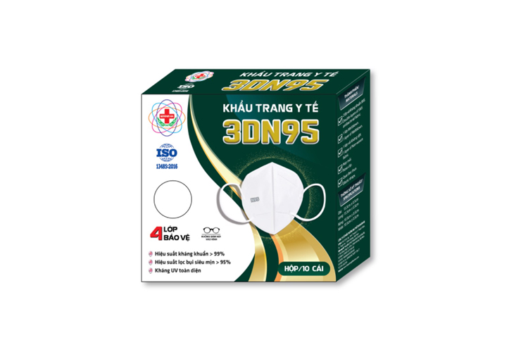 Khẩu trang y tế 4 lớp 3DN95 Khánh An màu trắng (20 cái/hộp) gồm 1 lớp màng lọc kháng khuẩn có chức năng lọc đến 99% vi khuẩn; 2 lớp vải kháng khuẩn SMS không thấm nước, thoáng khí, không gây kích ứng da và 1 lớp vải không dệt được làm từ 100% PP thân thiện với môi trường.