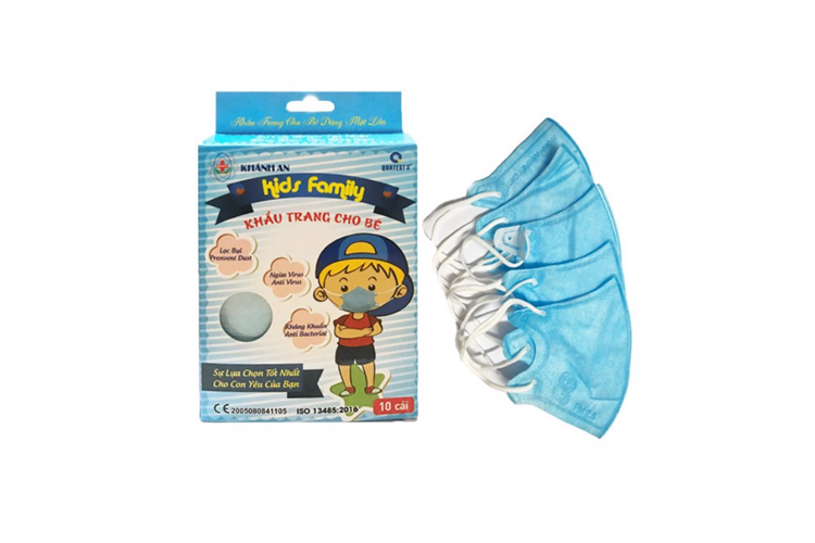 Khẩu trang y tế em bé mầm non 3D Khánh An màu xanh (10 cái/hộp) có khả năng ngăn ngừa khói bụi, không khí độc hại ngoài môi trường và chống xâm nhập của vi khuẩn lên đến 99% nhờ thiết kế 4 lớp dày dặn.