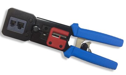 This modular crimping tool makes terminating communications cabling plugs easy. As an all-in-one tool, it lets you easily terminate RJ45, RJ12 and RJ11 plugs with paired-conductor cables for voice and data applications. Trim and strip cords with precision in one motion, for consistent, high quality connections.