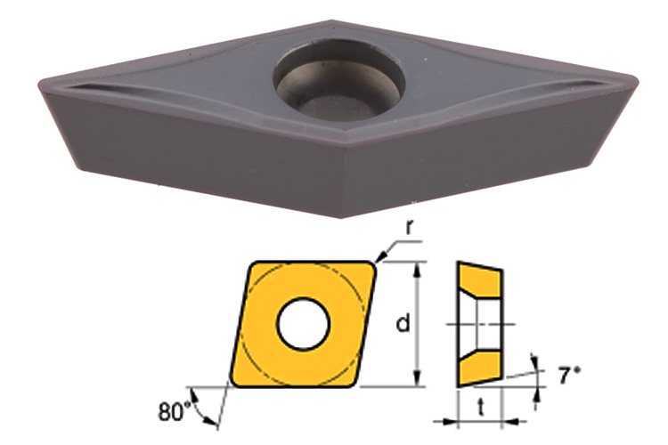 Ứng dụng: Dùng trong tiện và cắt rãnh cho vật liệu thép, hợp kim sắt thiêu kết phản ứng, bán hoàn thiện cho sắt đúc dẻo, bộ phận máy móc, vòng bi và các loại ống.