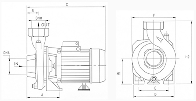 - Đầu bơm, vỏ động cơ và hệ thống gá đỡ được từ gang xám rất chắc chắn.