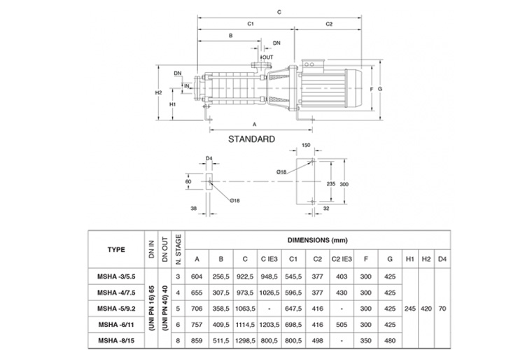 | MSHA 5/9.2 | 9.2KW/12.5HP | 380V-50HZ | 50 – 40 | 6 – 27 | 143 – 68.2 |