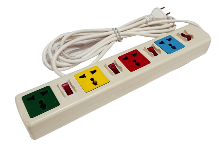 Ổ cắm có 4 ổ cắm dễ điều khiển cho từng thiết bị riêng biệt, công tắc được thiết kế chìm sâu để tránh tình trạng vô tình gây tắt điện. Mỗi ổ cắm được sơn màu riêng biệt để dễ phân biệt các thiết bị được kết nối với phích cắm.