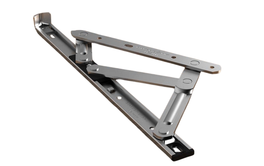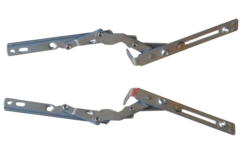 Nguyên lý hoạt động: Khi mở, bản lề sẽ tạo thành hình tam giác ổn định, lực được phân bổ đều qua các nhánh giúp cánh không bị gập xuống. Khi đóng lại, bản lề gập gọn gàng, không chiếm nhiều diện tích.