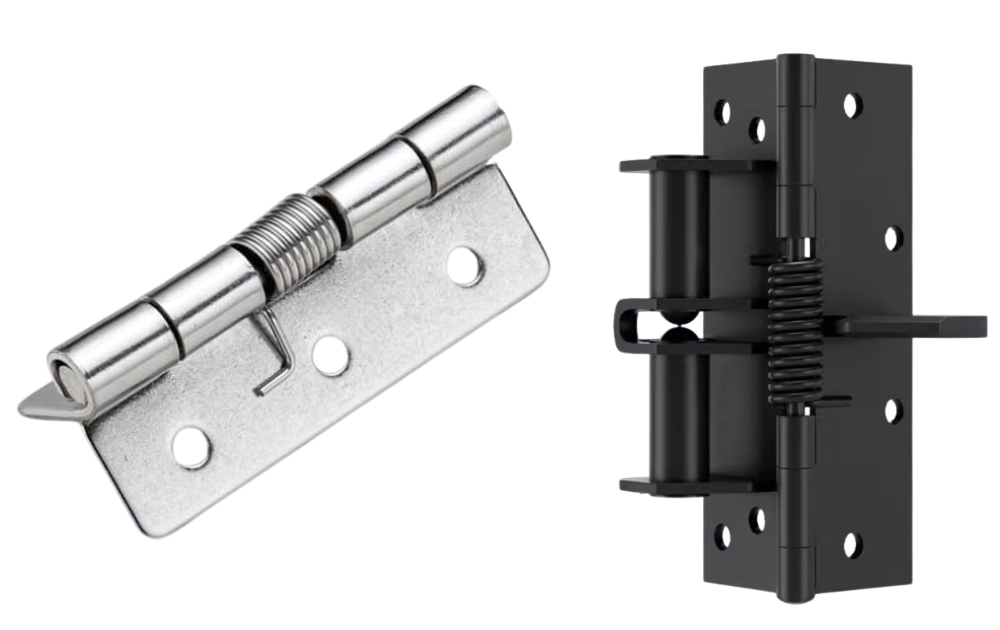 Khác với các loại bản lề thông thường chỉ hỗ trợ chuyển động mở – đóng theo bản lề truyền thống, bản lề tự đóng còn có thêm tính năng tự phục hồi trạng thái đóng, giúp cửa luôn được khép kín sau mỗi lần sử dụng. Loại bản lề này thường được sử dụng cho các loại cửa ra vào, cửa phòng vệ sinh, cửa kho lạnh, cửa nhà xưởng…