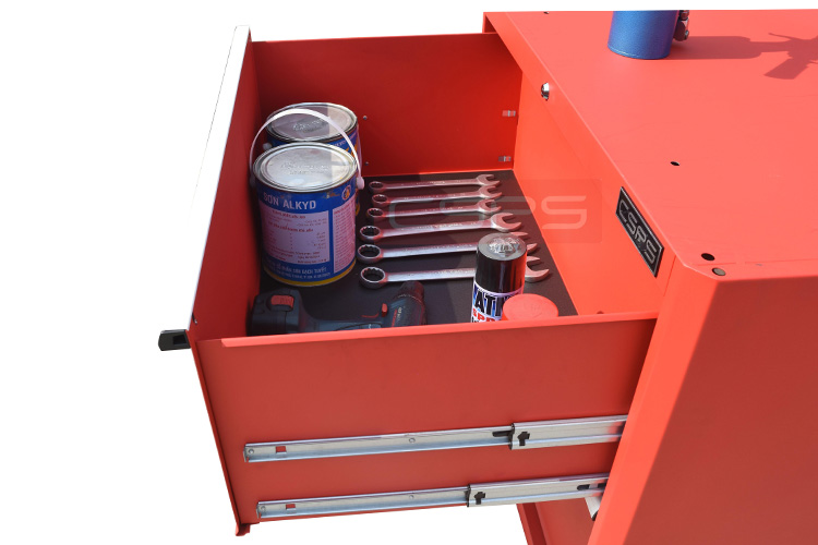 - Tủ dụng cụ chứa nhiều đồ dùng, thoải mái sử dụng linh hoạt khi đang làm việc.